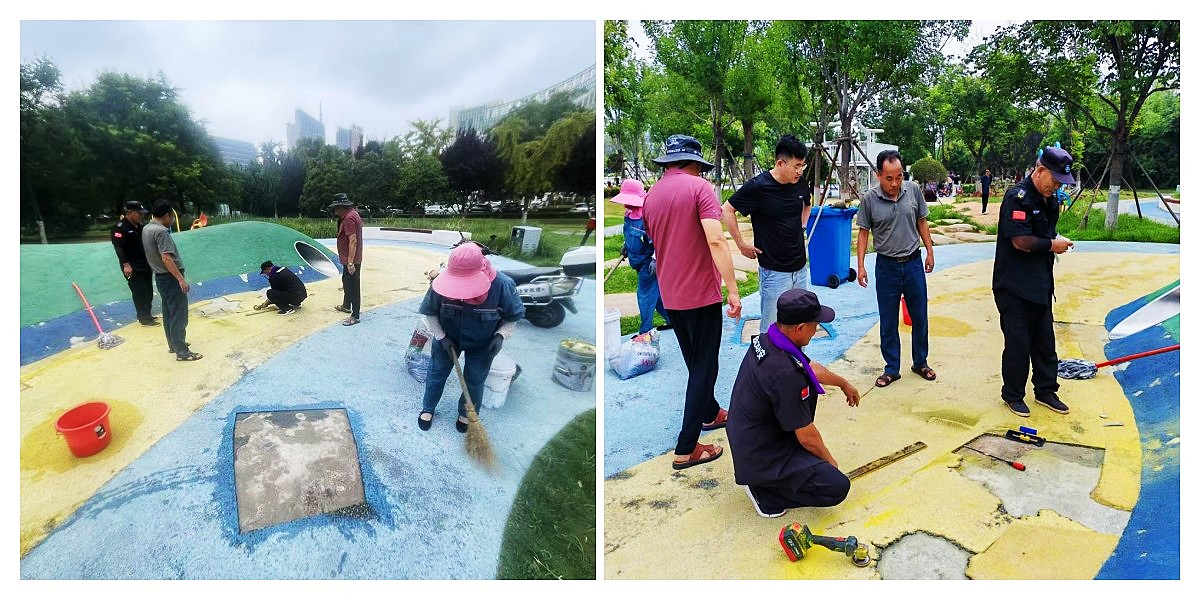 为提升市民游园体验,给市民营造更加安全、舒适的休闲环境,近期,建设集团对人才公园设施开展巡检,发现公园部分区域路面出现破损、开裂等问题,若不及时处理,不仅影响美观,还可能给居民带来安全隐患。