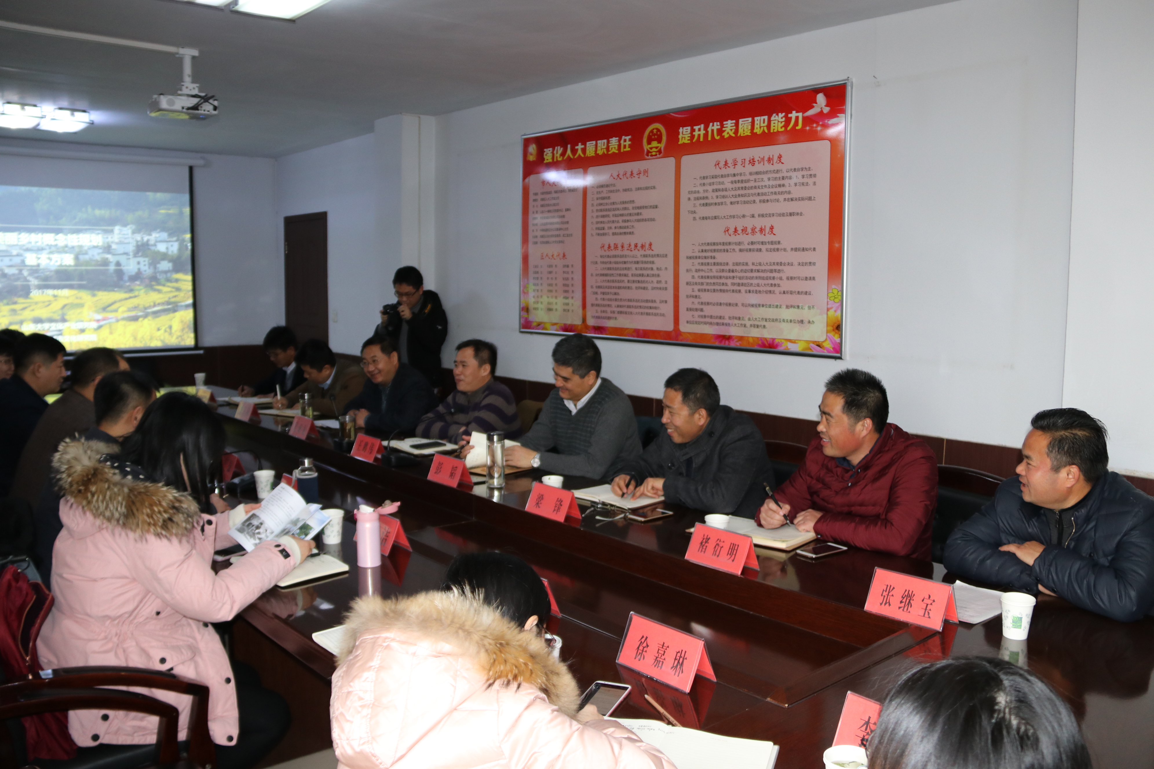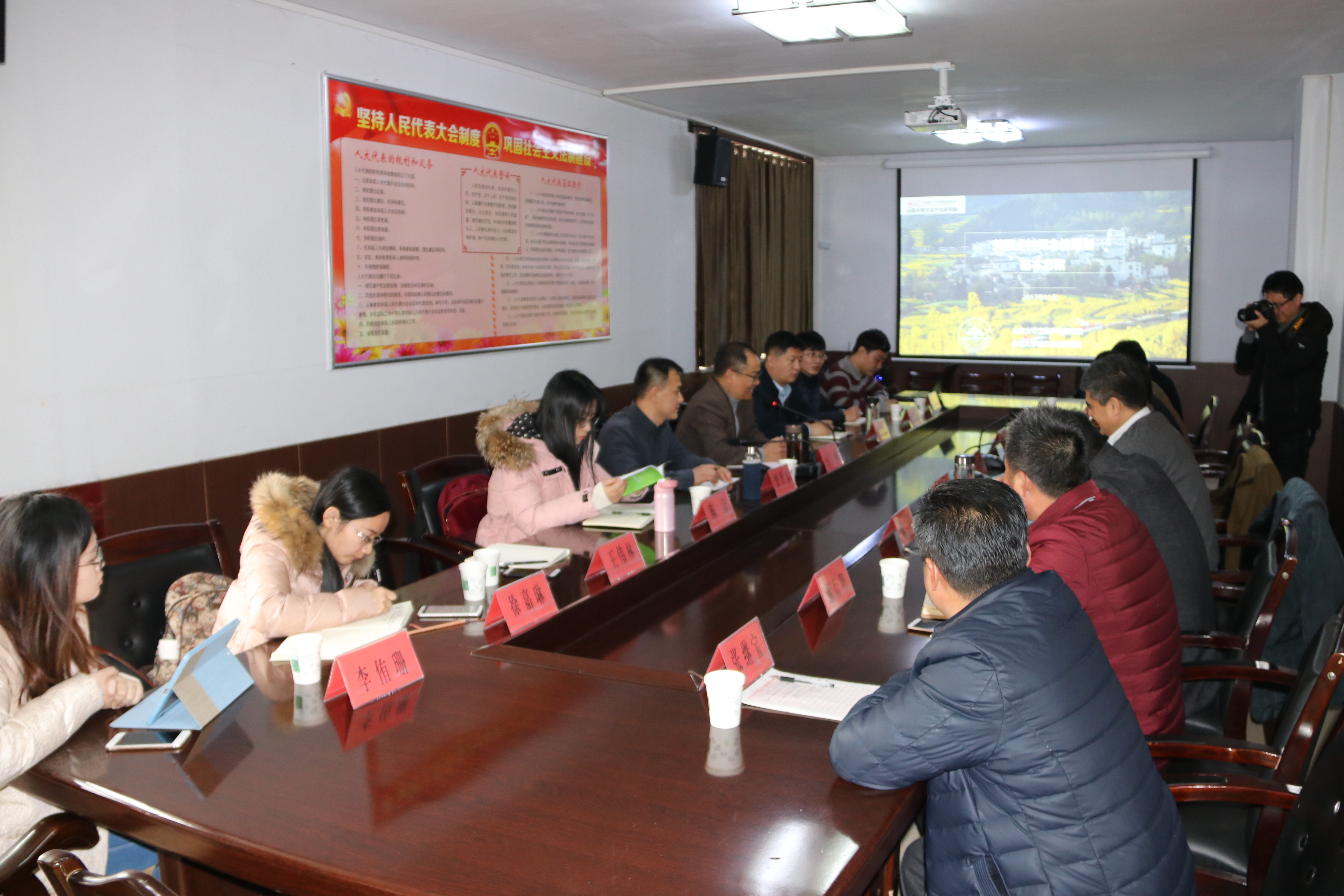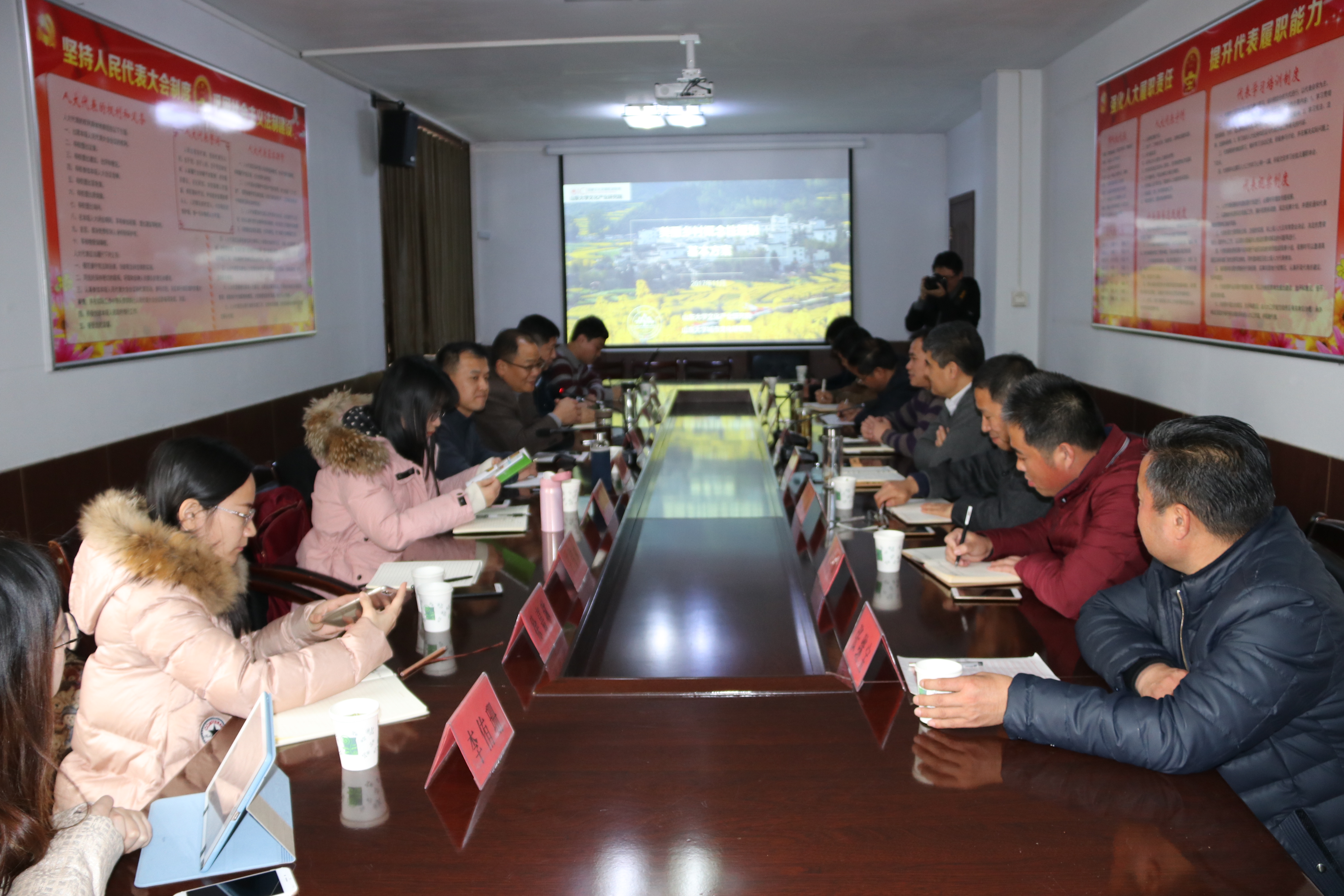 考察团实地调研了街道文化发展、旅游资源利用等工作,并对杏峪村未来的发展提出了建议规划。座谈会上,王广振院长及其学生以PPT的形式解说了《美丽乡村概念性规划基本方案》,让与会人员对美丽乡村建设有了新的认识,进一步拓宽了视野。