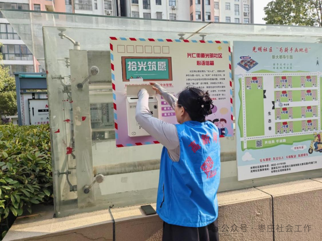 为深入贯彻落实市委社会工作部关于常态化开展“人民建议征集”工作的部署要求,拓宽民意反映渠道,激发居民参与社区治理的内生动力,枣庄高新区兴仁街道立足实际、积极探索,创新设立“解忧”信箱。 这一举措是街道深化“服务在身边,满意在兴仁”品牌,践行“解民忧、纾民困、暖民心”宗旨的生动实践,更是畅通“人民建议征集”渠道、搭建居民有序参与社区公共事务平台的有益尝试。