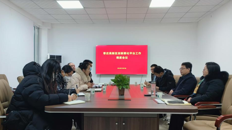 1月25日,枣庄高新区创新孵化平台工作调度会议召开。区党工委委员、管委会副主任谢辉主持会议并讲话,区科技创新中心全体人员及区内相关孵化平台负责人参加会议。