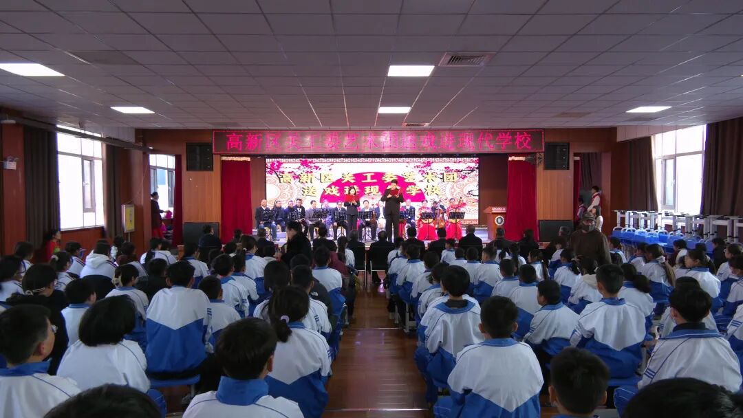 12月5日,区关工委艺术团“送戏进校园”活动走进枣庄现代实验学校。区关工委主任王荣义,市人大常委会高新区工作室主任、区关工委常务副主任邓兴,区关工委常务副主任张忠良出席活动。
