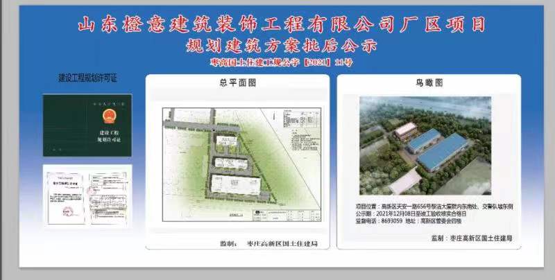 山东橙意建筑装饰工程有限公司厂区项目规划建筑方案批后公示