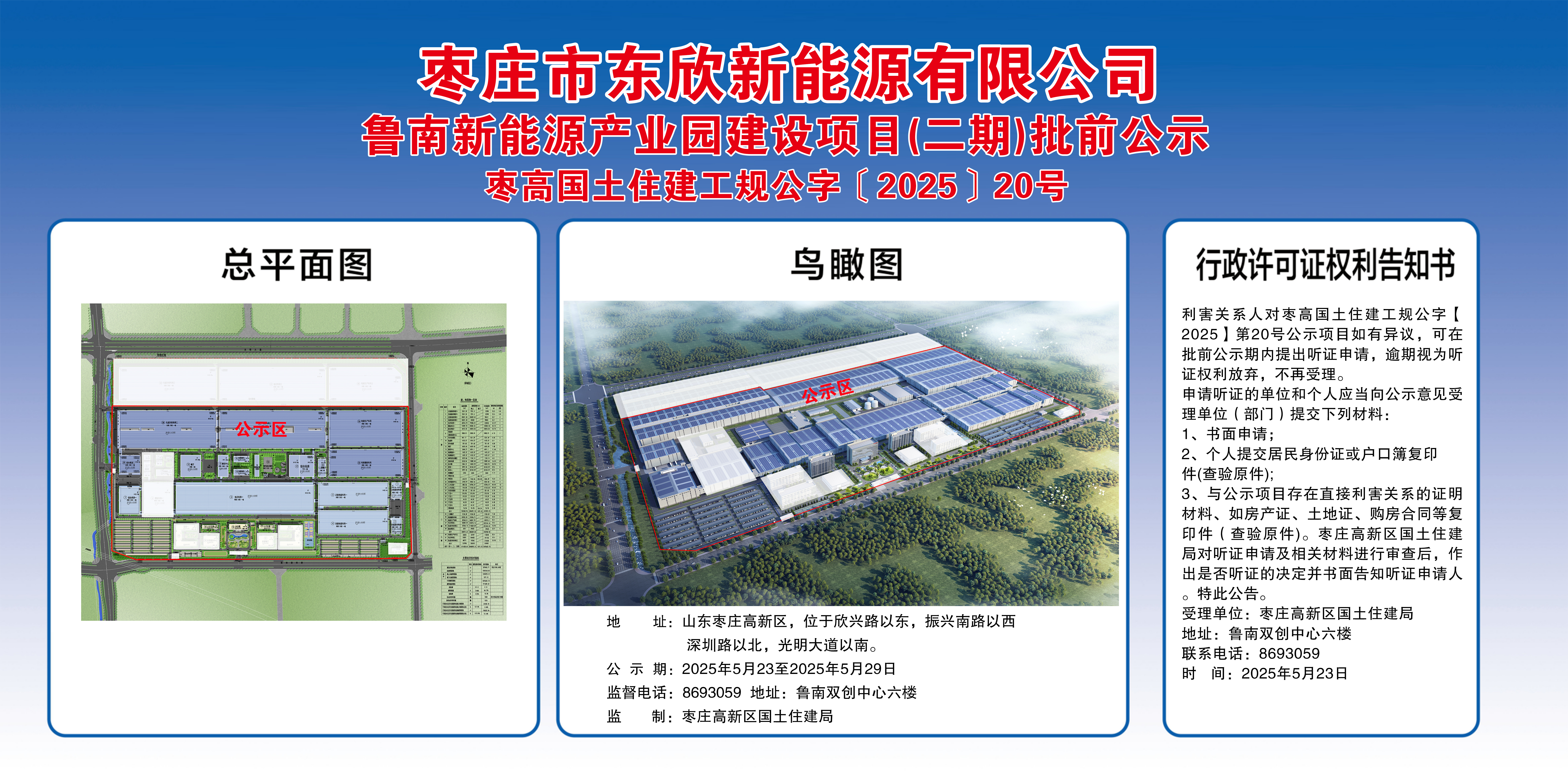 枣庄市东欣新能源有限公司鲁南新能源产业园建设项目(二期)批前公示