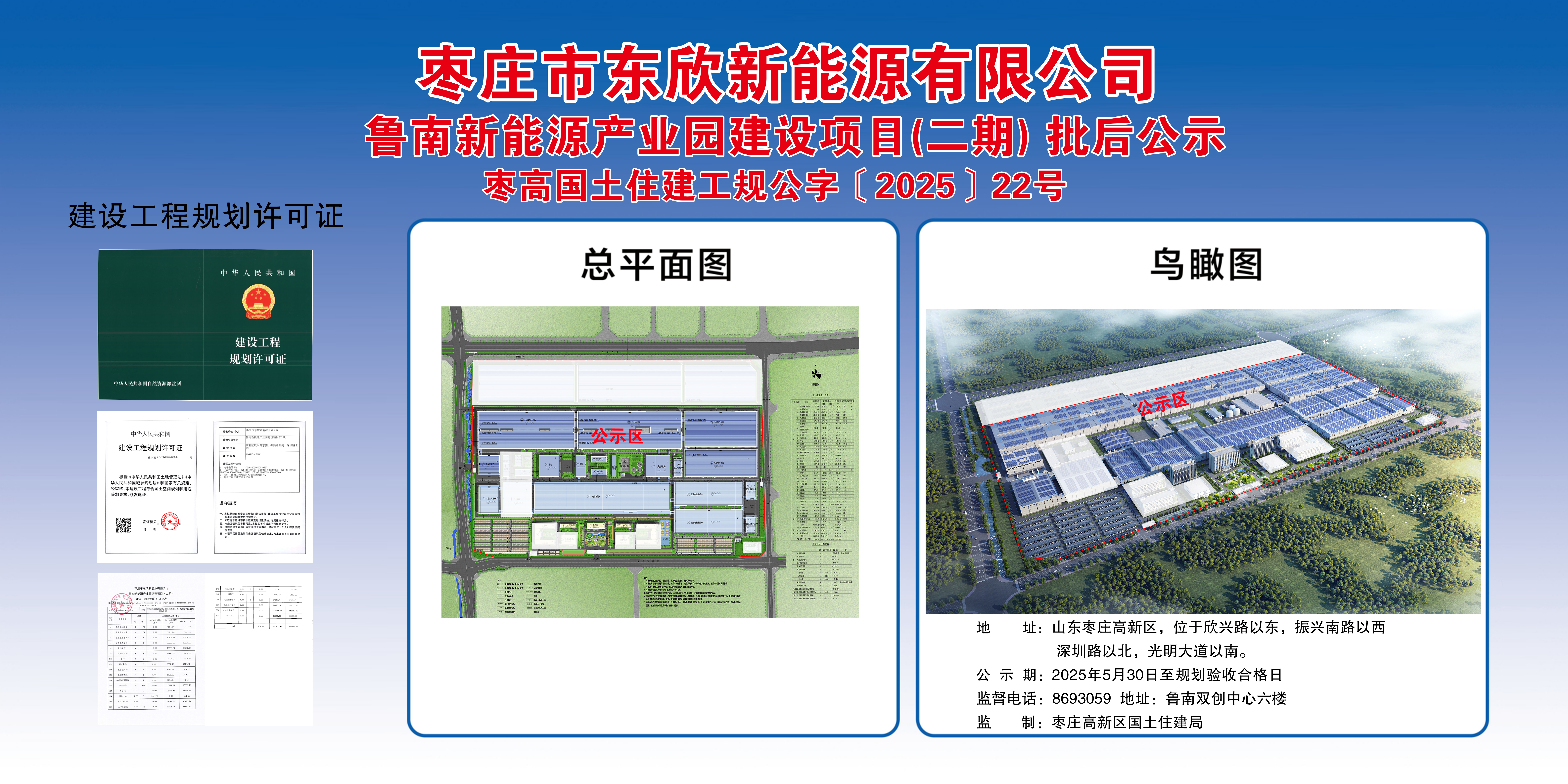 枣庄市东欣新能源有限公司鲁南新能源产业园建设项目(二期)批后公示