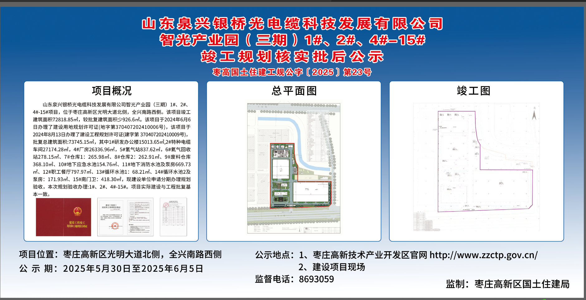 山东泉兴银桥光电缆科技发展有限公司智光产业园(三期)1#、2#、4#-15#批后公示