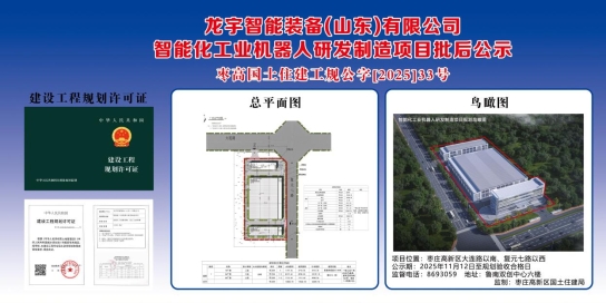 龙宇智能装备(山东)有限公司 智能化工业机器人研发制造项目 批后公示