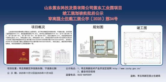 山东紫东科技发展有限公司 紫东工业园项目 竣工规划核实批后公示