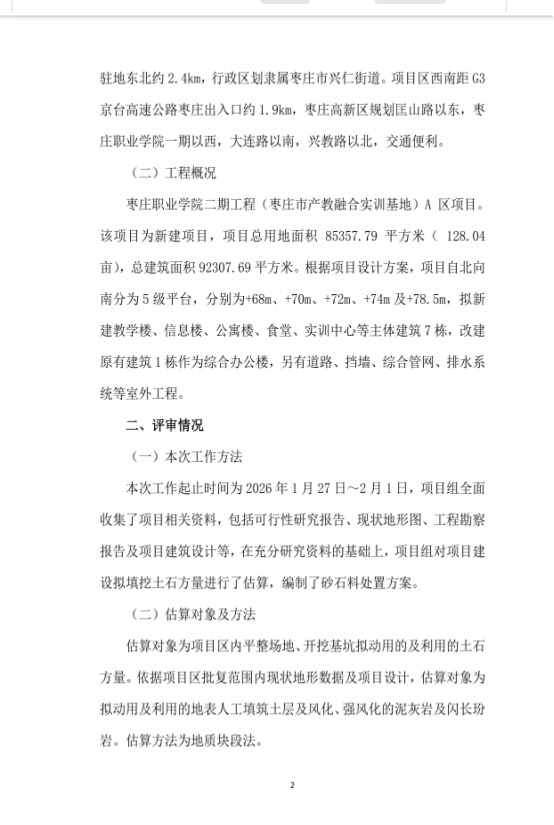2026年2月6日,高新区国土住建局组织专家对《枣庄职业技术学院二期工程(枣庄市产教融合实训基地)A区项目砂石料处置方案》(以下简称《方案》)进行了现场踏勘和会议评审。专家组认为,《方案》内容全面、依据充分、措施可行,符合省、市相关政策要求,原则同意通过评审,并提出了修改建议。枣庄职业学院已按专家组意见修改完善。经复核,修改后的《方案》符合要求,高新区国土住建局同意专家组评审意见。