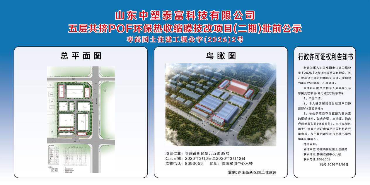 山东中塑泰富科技有限公司 五层共挤POF环保热收缩膜技改项目(二期)批前公示