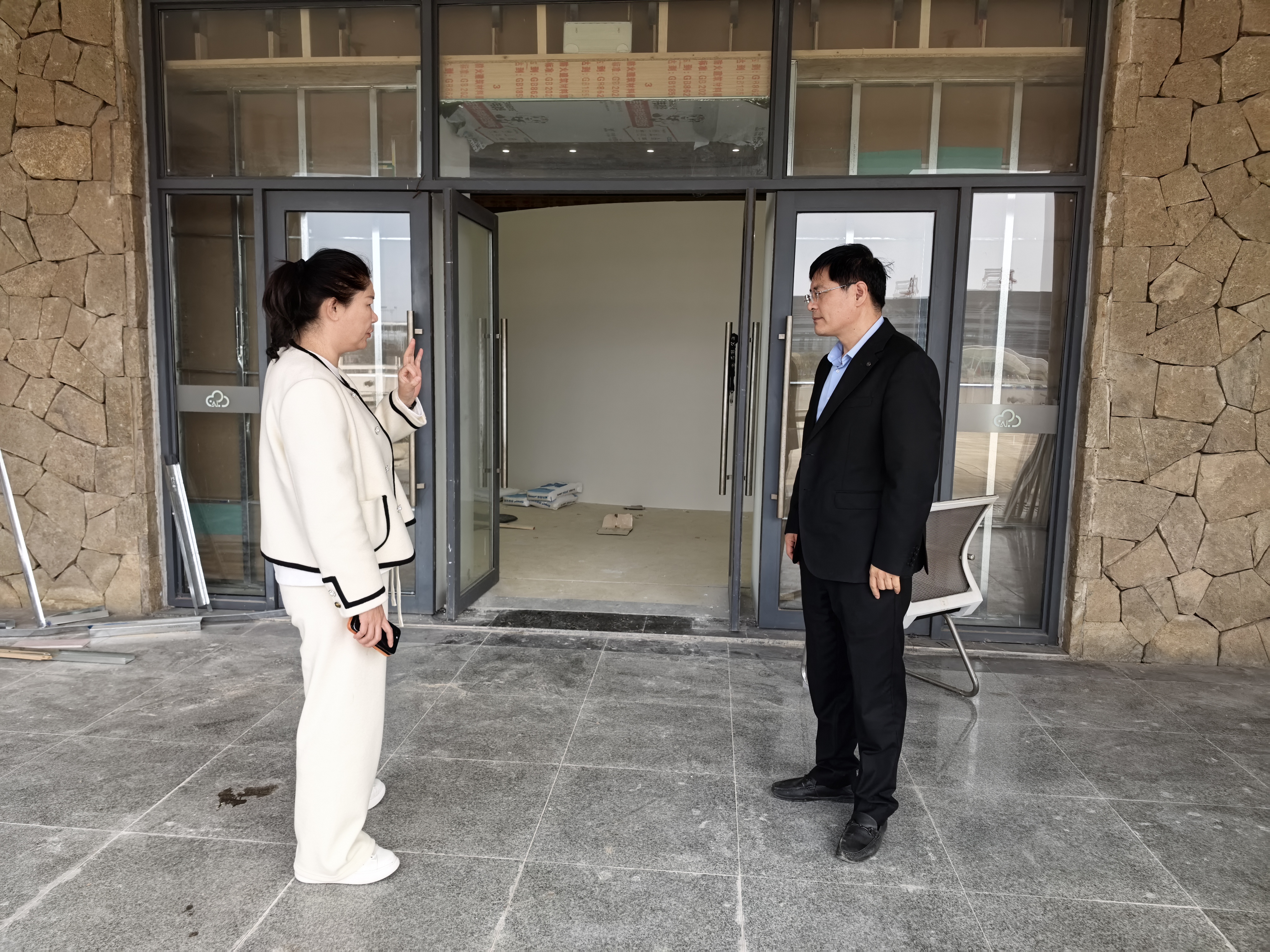 10月30日上午,枣庄高新智能装备科技有限公司到无人机项目现场了解施工进度,并与物产沟通厂房漏雨及更换配套设施等事宜。