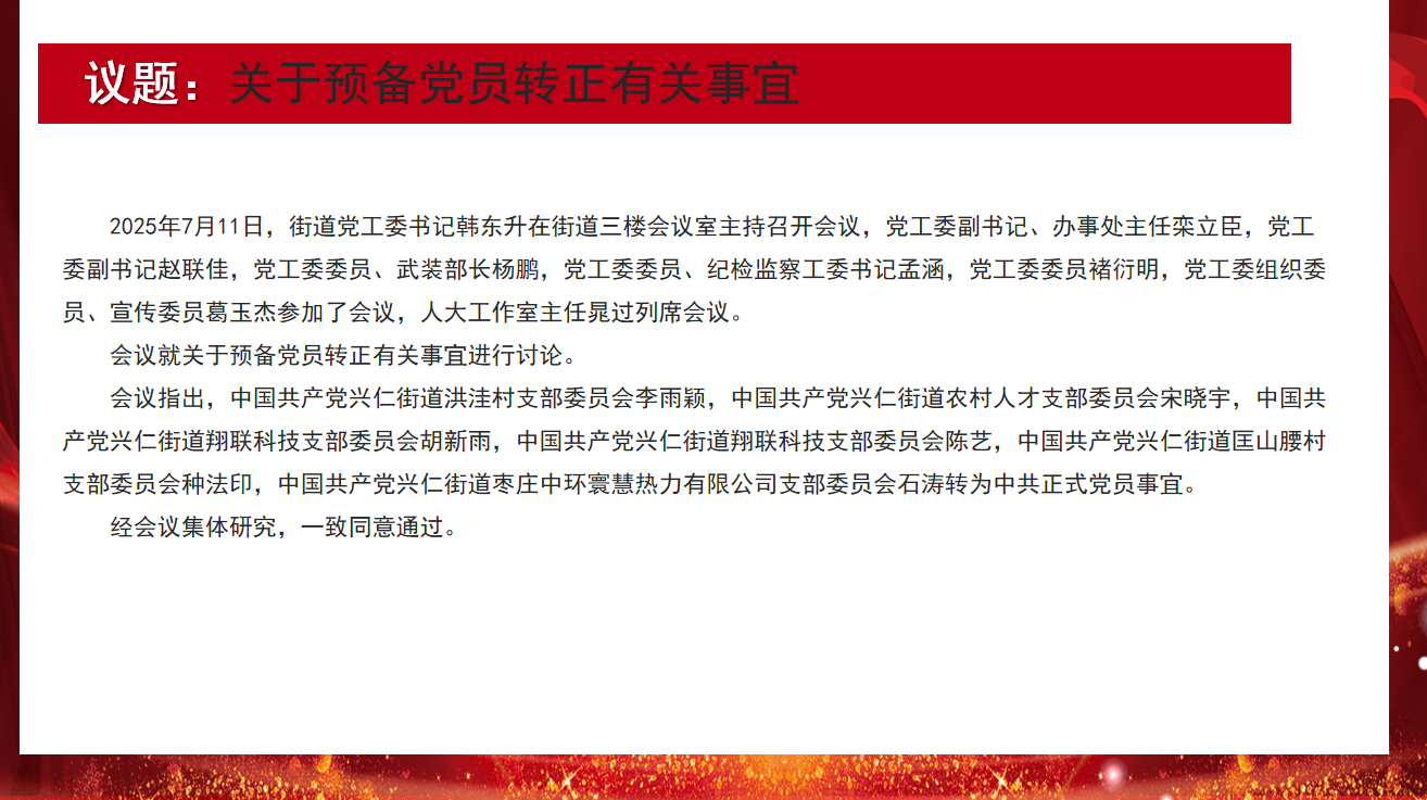 兴仁街道2025年第7次主任办公会议解读
