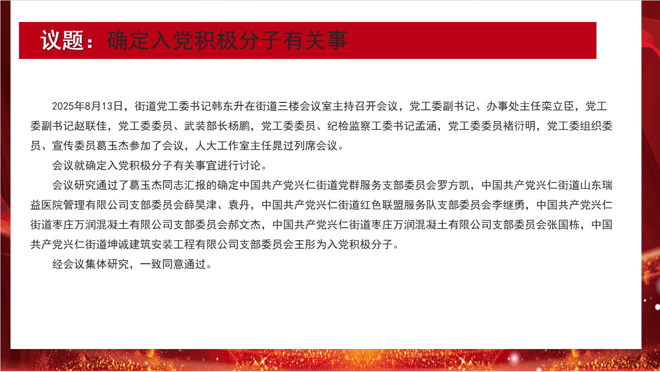 兴仁街道2025年第8次主任办公会议解读