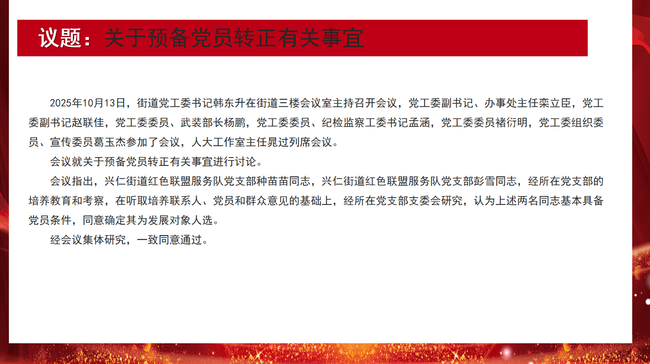 兴仁街道2025年第10次主任办公会议解读