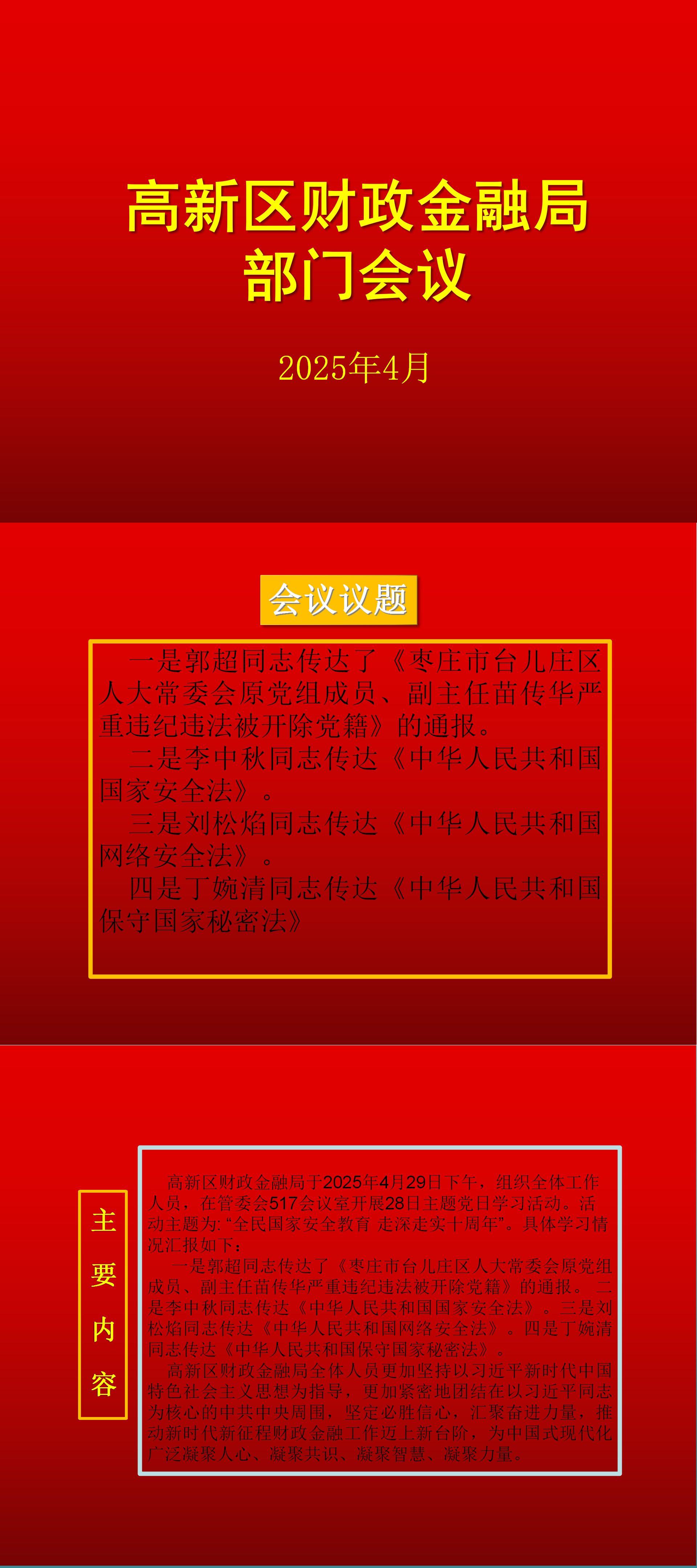 • 标  题:2025年高新区财政金融局4月部门会议解读