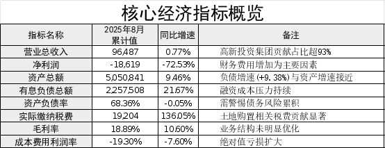 截至8月,监管一级企业户数2户(欣兴集团、高新投资集团),环比上月无变动。营业总收入本年累计96,487万元,同比增长0.77%;净利润-18,619万元,同比减少72.53%;归属于母公司所有者的净利润-17,876万元,同比减少65.68%;资产总额5,050,841万元,同比增长9.46%;负债总额3,452,180万元,同比增长9.38%;所有者权益总额1,598,661万元,同比增长9.71%;有息负债总额2,257,508万元,同比增长21.67%。