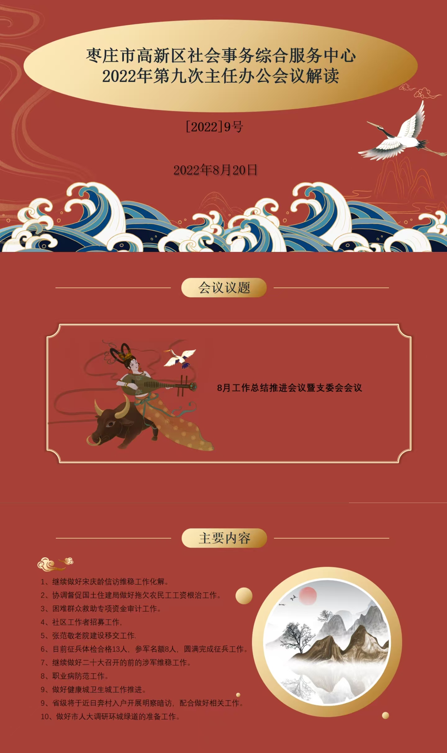 枣庄市高新区社会事务综合服务中心2022年第九次主任办公会议解读