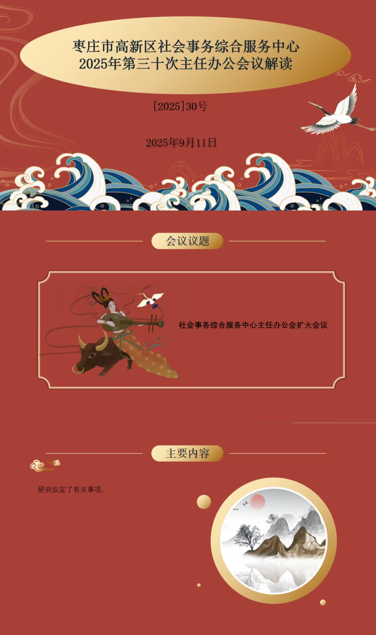 枣庄市高新区社会事务综合服务中心2025年第三十次主任办公会议解读