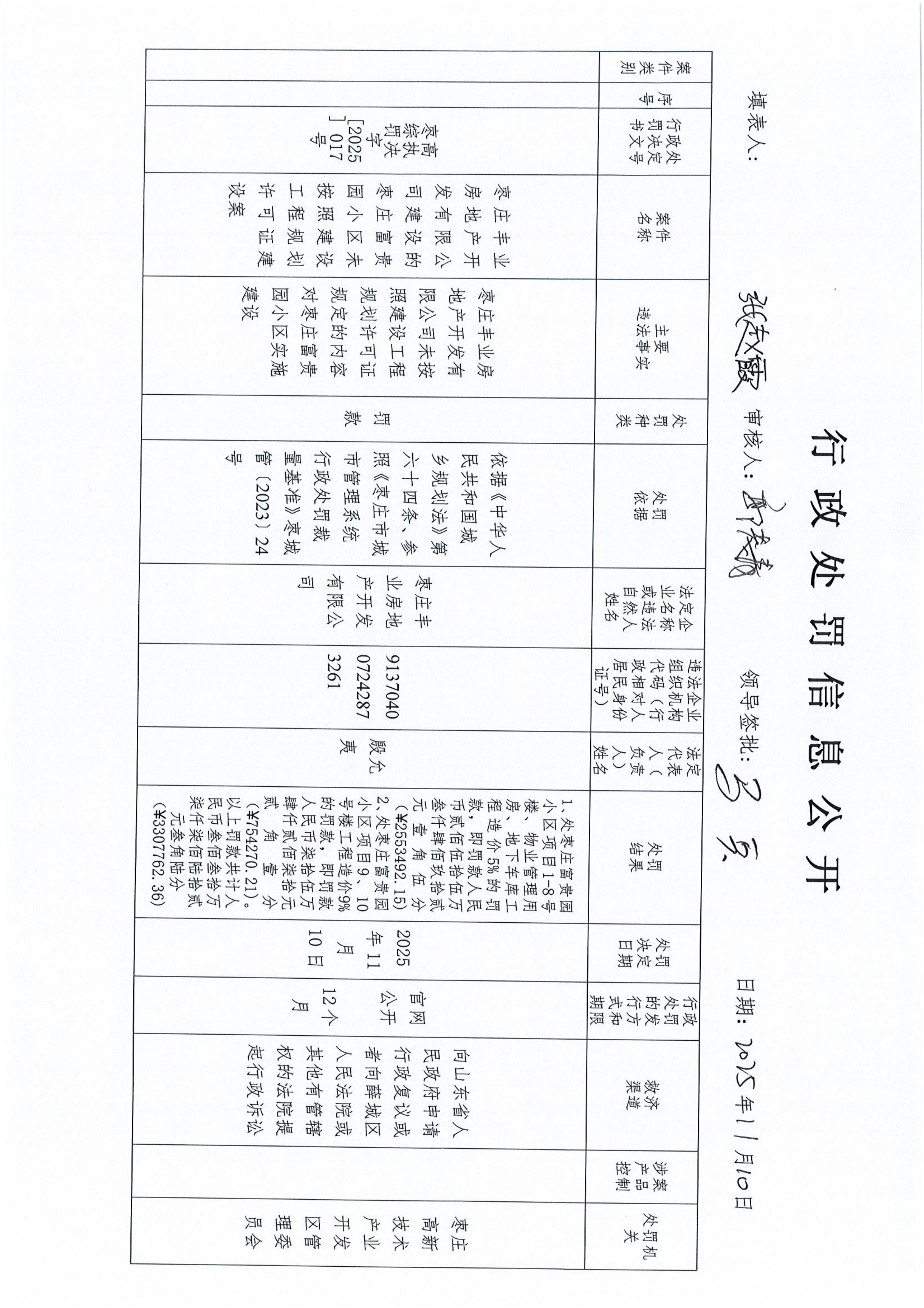 枣庄高新区行政处罚信息公开(2025.11.10)