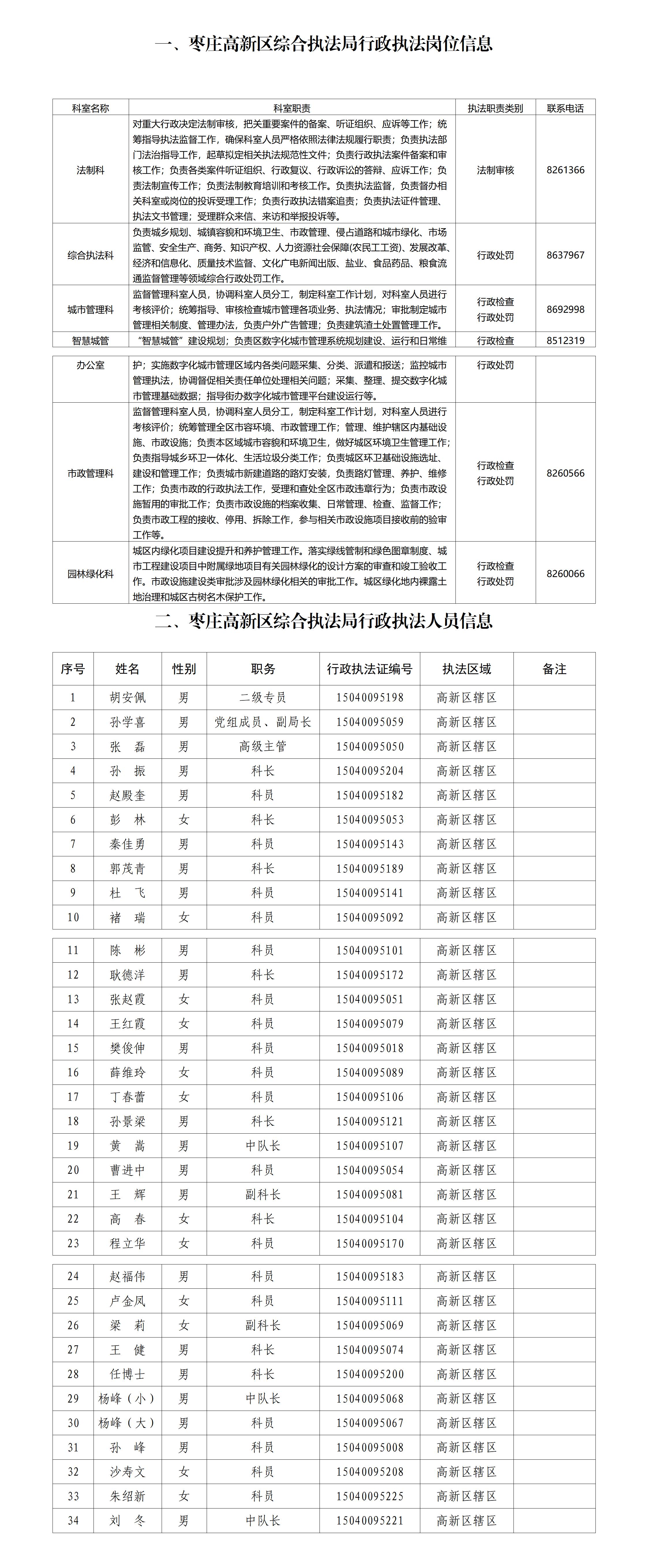 枣庄高新区综合执法局行政执法岗位和行政执法人员信息公示