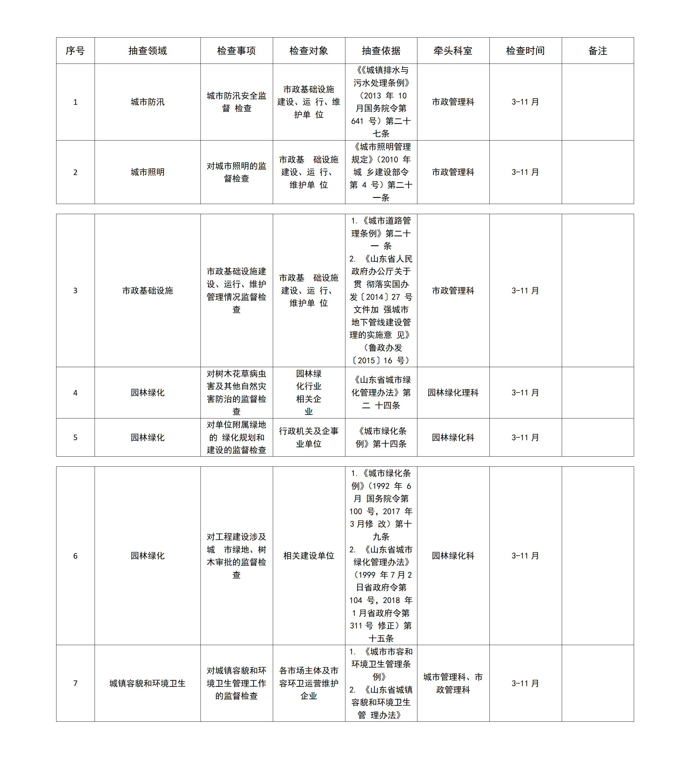 枣庄高新区综合执法局2026年度“双随机,一公开”监督检查抽查事项清单