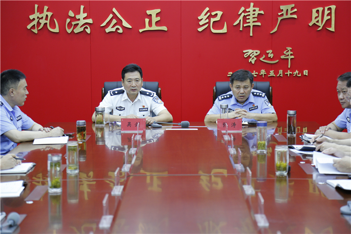 分局党委书记、局长吴剑,分局党委副书记、政委张涛,分局党委班子成员张峰、王克、种琳波、高扬及各室所队主要负责同志参加会议。