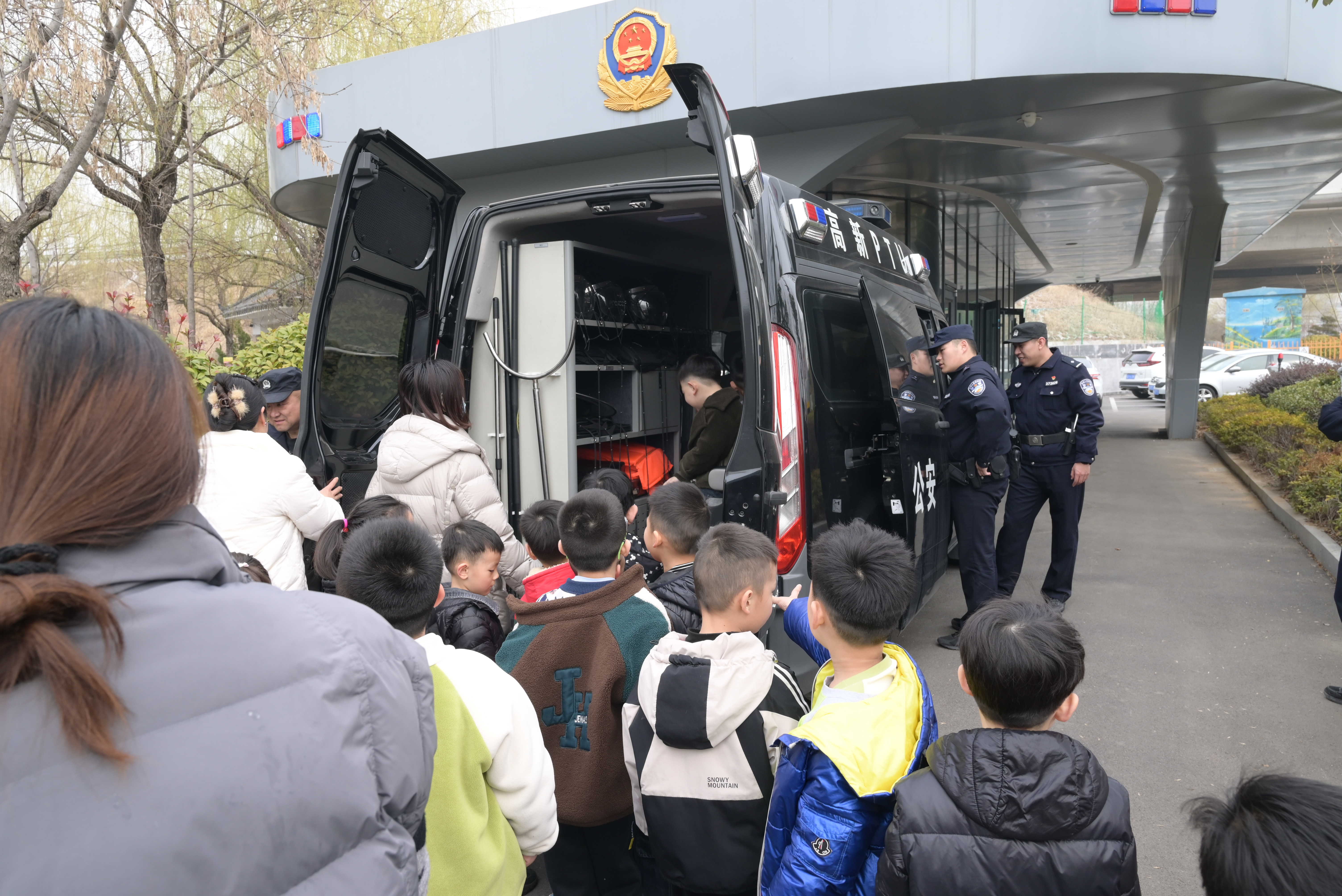 活动伊始,派出所民辅警热情地带领师生们参观警务站各个功能区域。在接警大厅,详细介绍了接警、处警的工作流程,让师生们了解到每一个报警电话背后的快速响应与高效行动。走进装备室,琳琅满目的警用装备吸引了师生们的目光,民警细致讲解各类装备的功能及使用方法,让大家对警务工作有了更直观的认识。