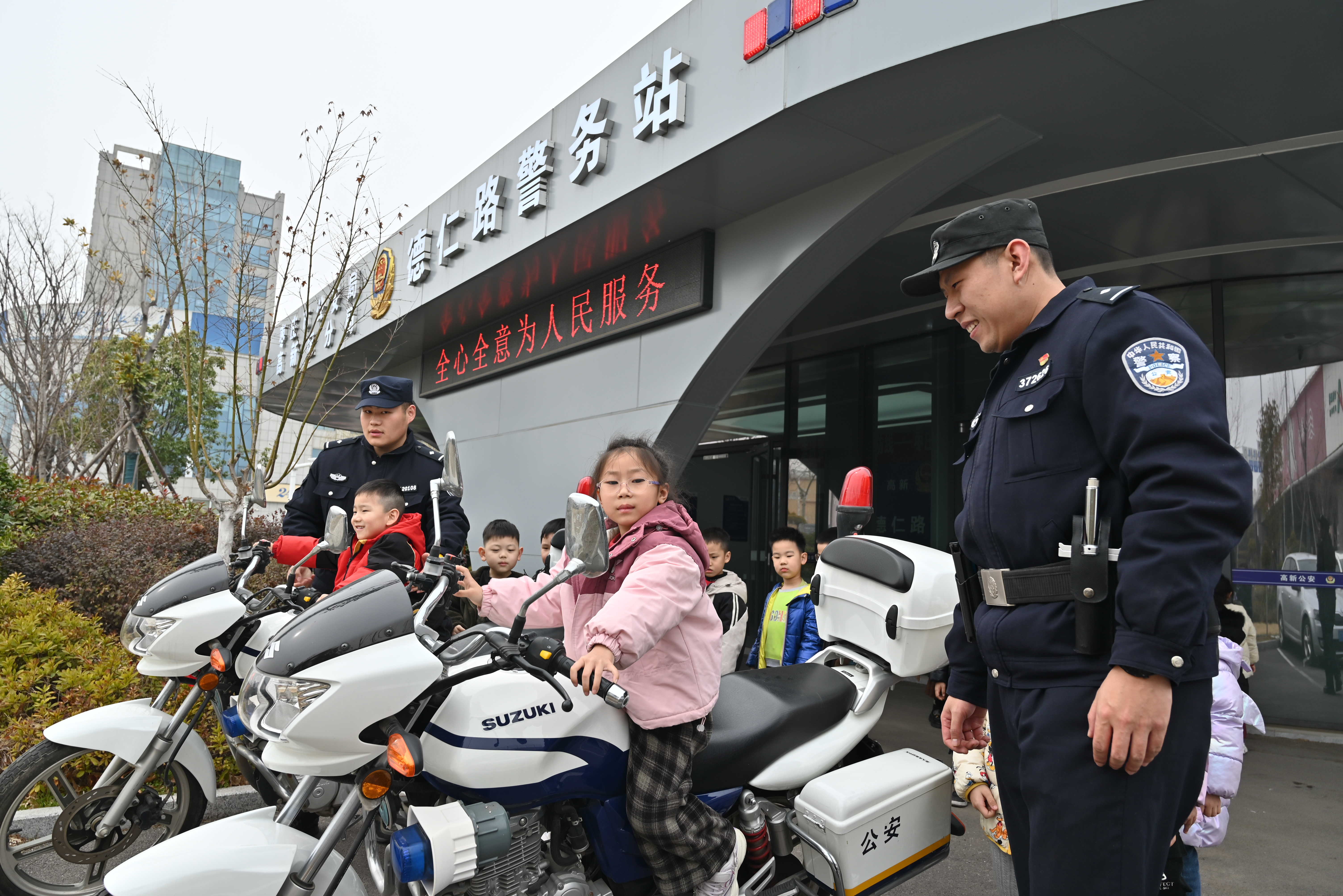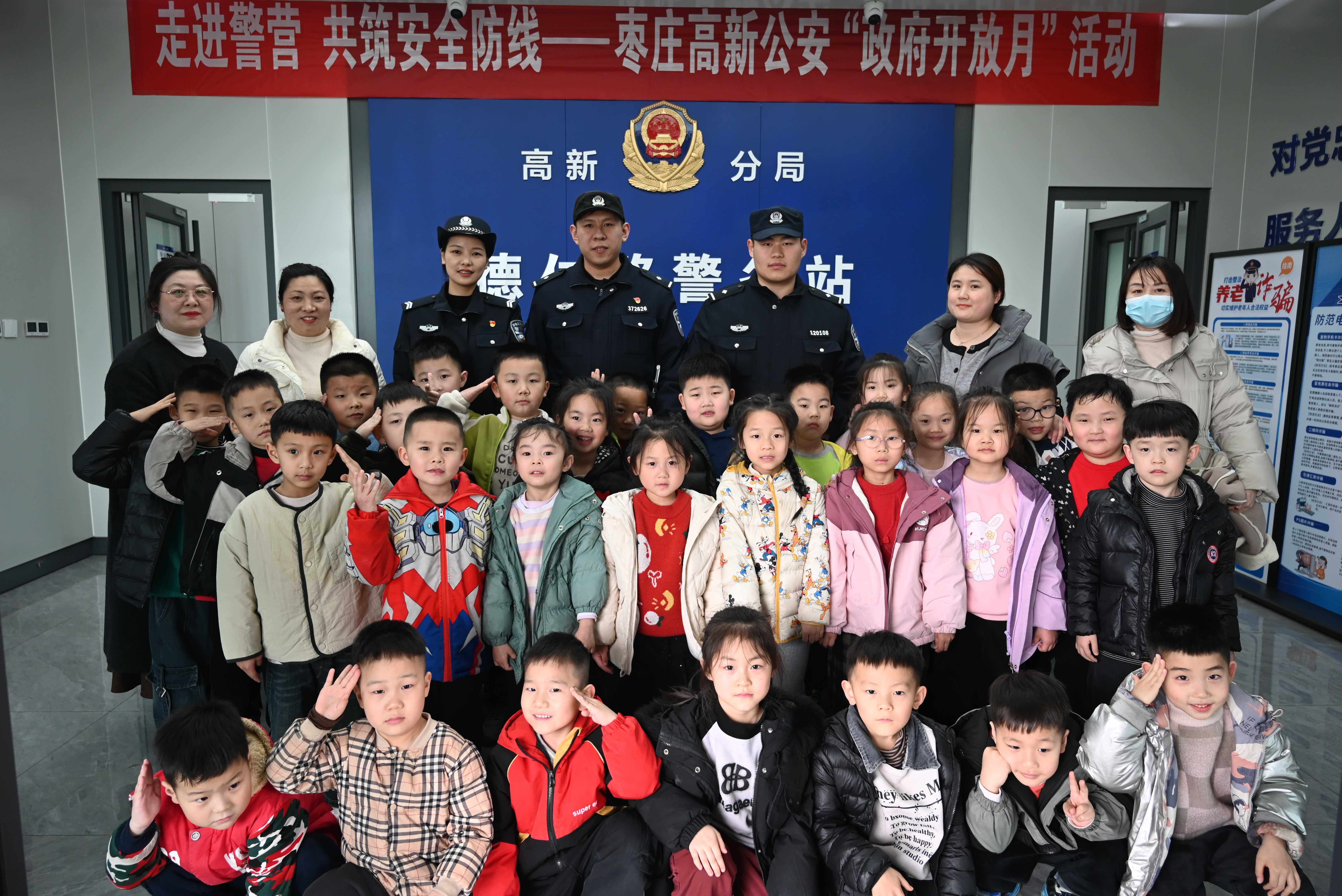 为增进公众对公安工作的了解和支持,提升师生的安全意识,3月11日,枣庄高新区公安分局兴仁派出所精心组织了一场别开生面的“政府开放月”活动。此次活动在兴仁街道德仁路警务站举行,格林双语幼儿园30余名师生受邀参加,共同开启了一场充满新奇与收获的警营之旅。