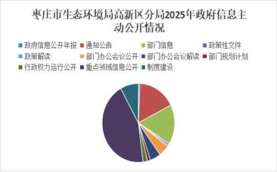 2025年,枣庄市生态环境局高新区分局通过枣庄国家高新技术产业开发区政府网站(高新区信息公开网)发布信息140余条,其中部门办公议公开7条、部门办公会议解读7条、重点领域信息公开65条,其它信息60余条
