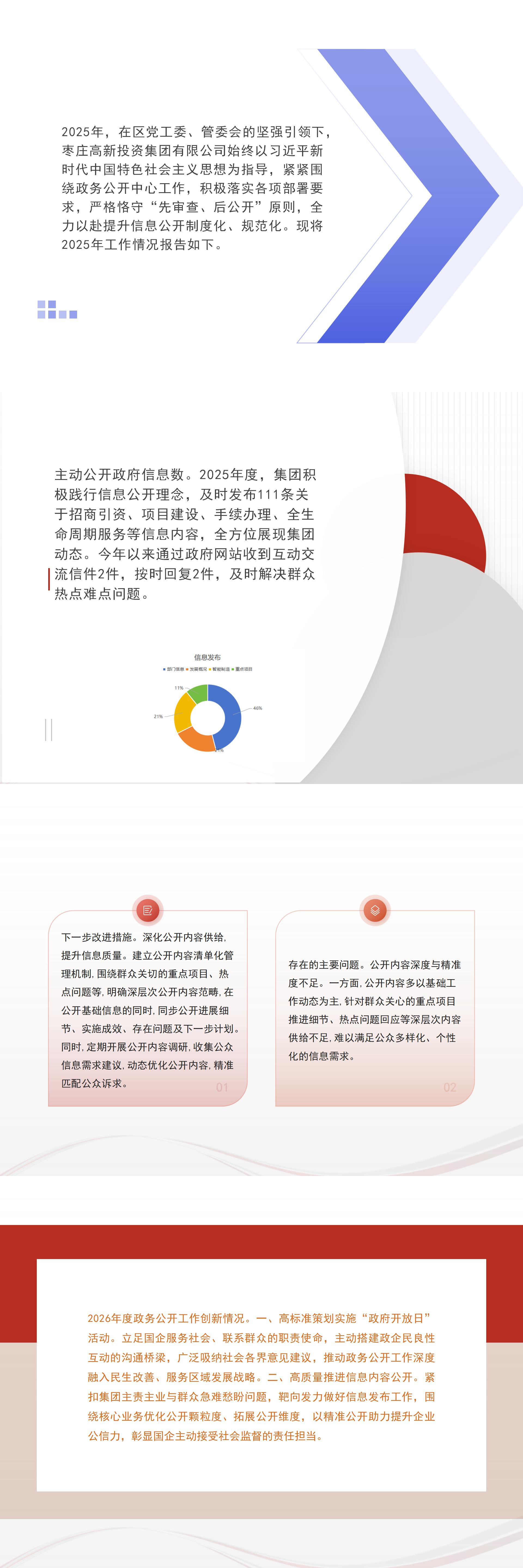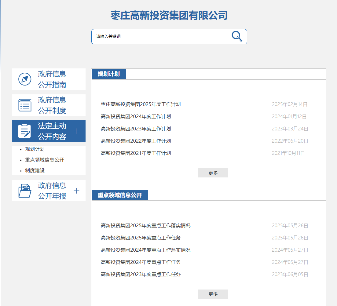 (二)落实2025年山东省政务公开效能监测实施方案。根据省市区政务公开要求,结合集团实际,制作主动公开基本目录清单,并及时更新部门信息、产业发展、重点项目等各类信息,促进集团政务公开工作提质增效。