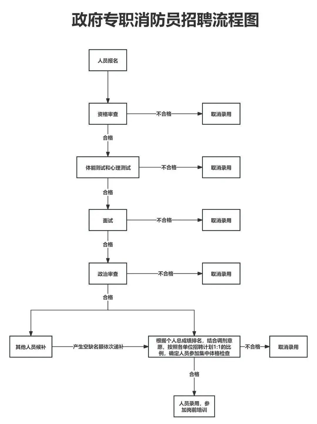 1、参加政府专职消防员招聘体型测试、体能测试、心理测试、面试、政治审查、体格检查均合格的全日制本科及以上学历报名人员,直接录用。