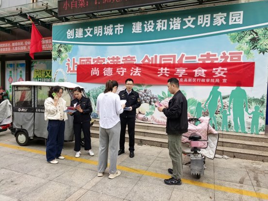 为进一步普及食品安全知识,增强公众食品安全观念,规范食品生产经营流程,打造安全、健康、安心的食品消费环境,高新区行政审批局开展以“尚德守法,共享食安”为主题的食品安全宣传周活动,推动食品安全共治共享。本次活动通过多元化宣传形式,将食品安全知识送到商户、群众身边,推动相关知识深度融入日常。
