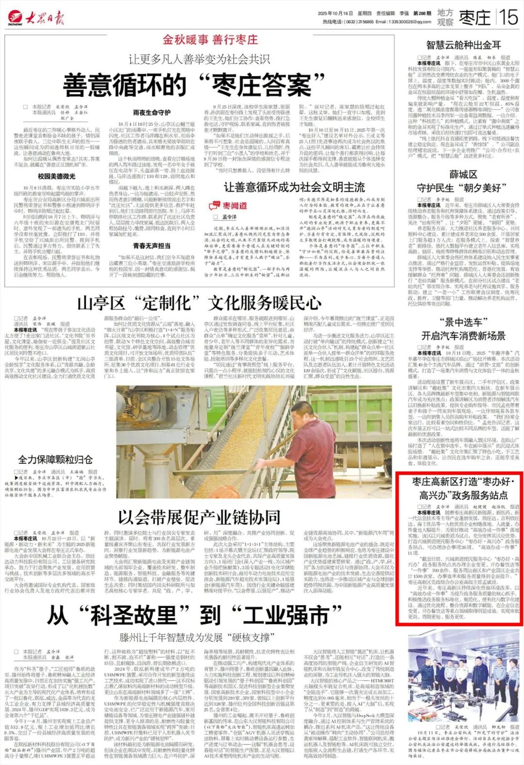 大众日报关注我区:枣庄高新区打造“枣办好·高兴办”政务服务站点