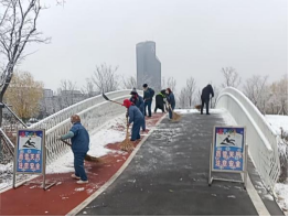 即下即清,降雪伊始,对城区主次干道、桥梁、坡道等重点区域进行不间断巡查,实时掌握路面雪情和结冰情况。针对路面及人行道出现的积雪,连夜开展清扫作业,防止积雪压实结冰。全面清理公园积雪,对公园内主要园路、台阶、游乐设施等区域的积雪进行集中清扫,设置安全提示牌,保障市民游园安全。园林养护人员则使用长杆等工具,细心清理苗木树木上的积雪,防止枝条折断倒伏,保护绿化成果,确保道路和公共区域畅通安全。各执法中队加强市容环境巡查,督促沿街商户落实“门前三包”责任,自觉清扫门前积雪。加强市政设施巡查,对路面井盖、路沿石等设施进行排查,发现破损问题,立即组织应急维修队伍进行快速修复,消除安全隐患。