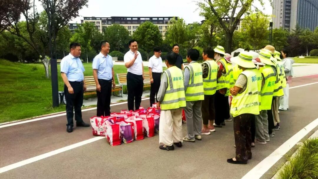 近日,市城市管理局党组书记、局长吕济禹带队来我区开展“夏日送清凉”慰问活动,向不畏酷暑、坚守岗位的环卫工人送去清凉与关怀。区党工委委员、管委会副主任杨斌陪同。