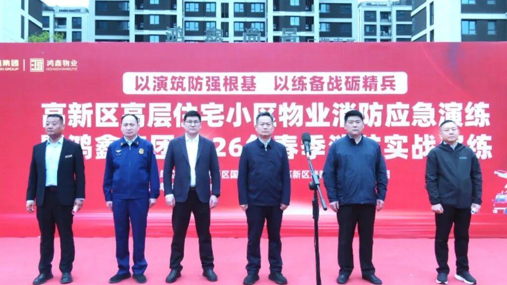 为全面提升物业人员及居民的消防安全意识和应急处置能力,4月8日,高新区高层住宅小区物业消防应急演练活动在鸿鑫尚景二期北区举行,区党工委委员、管委会副主任杨斌出席。