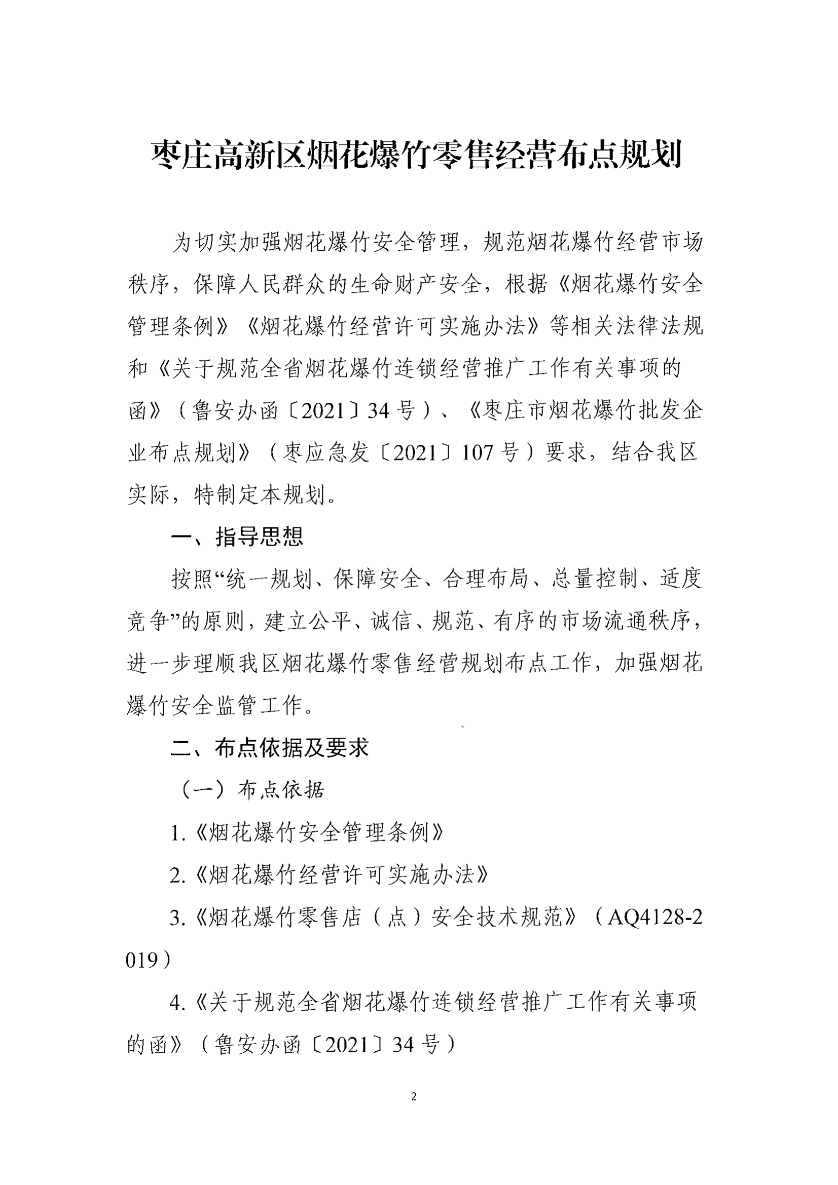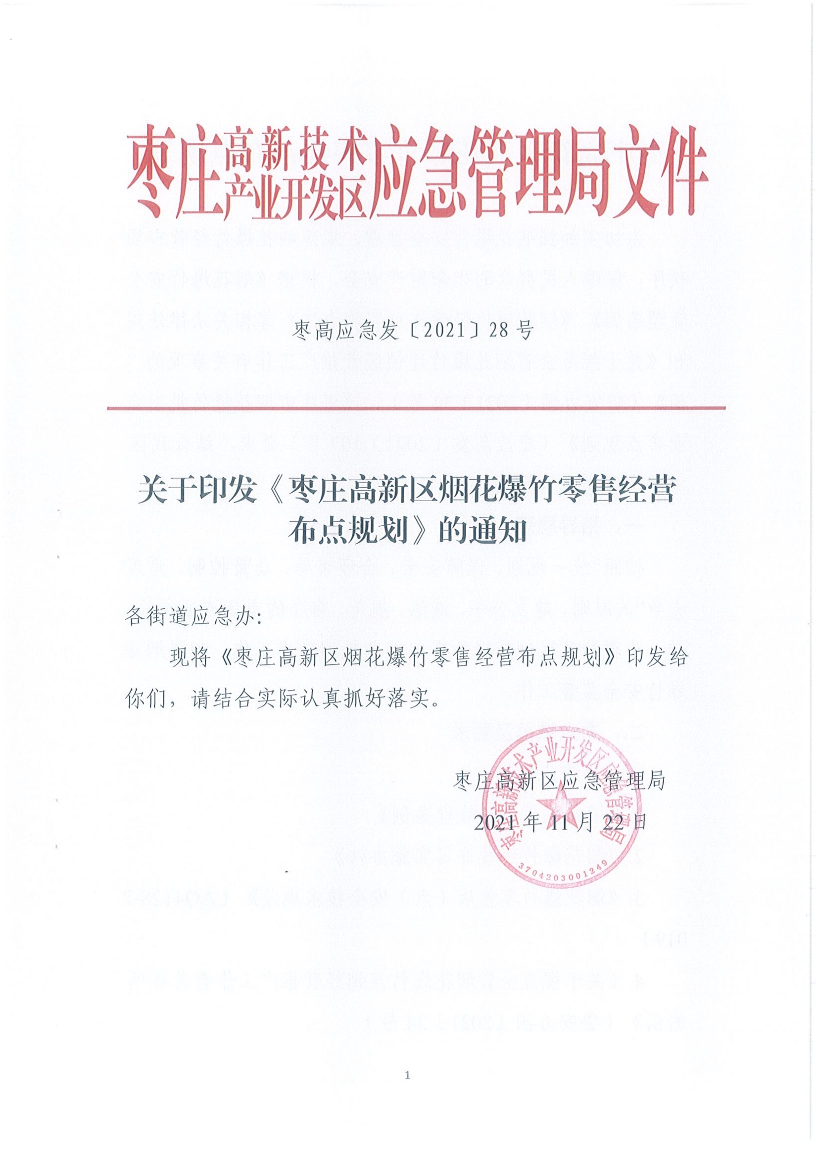 枣庄高新区烟花爆竹零售经营布点规划的通知