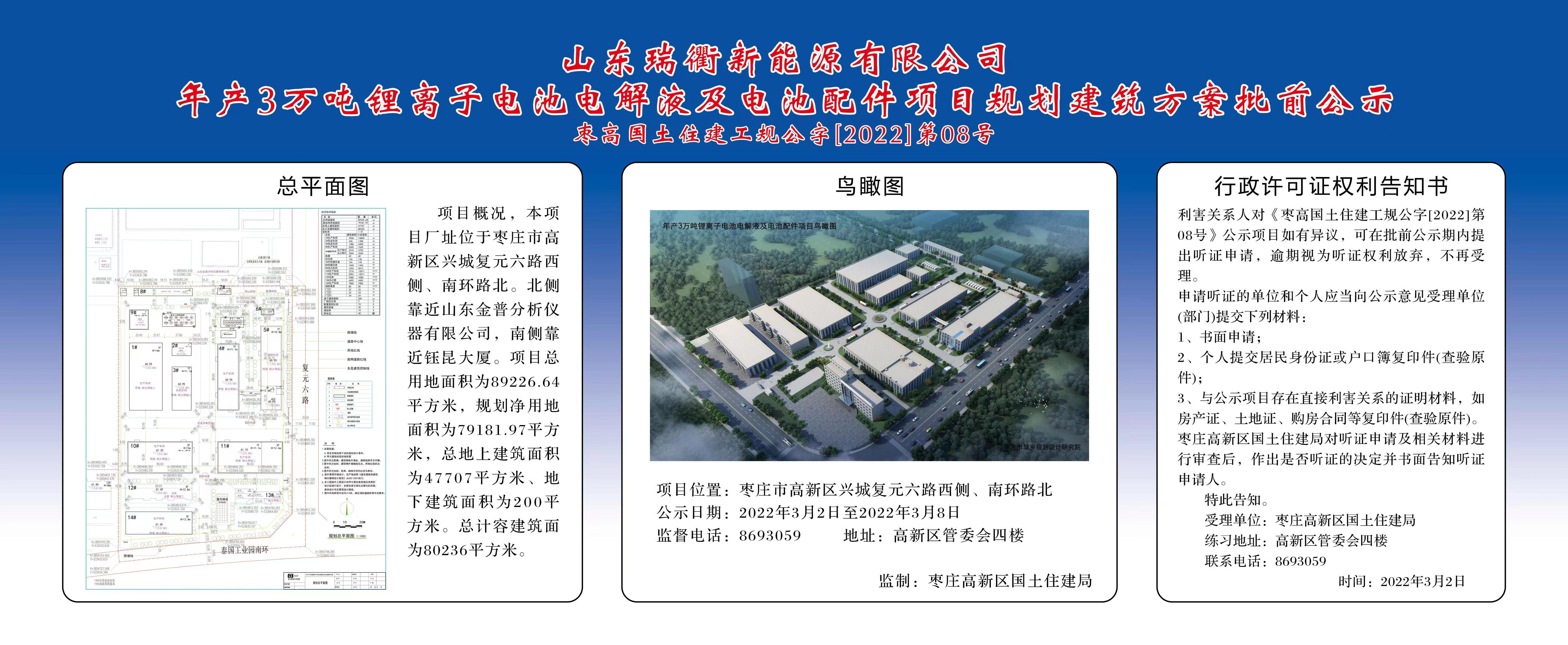 年产3万吨锂离子电池电解液及电池配件项目规划建筑方案批前公示