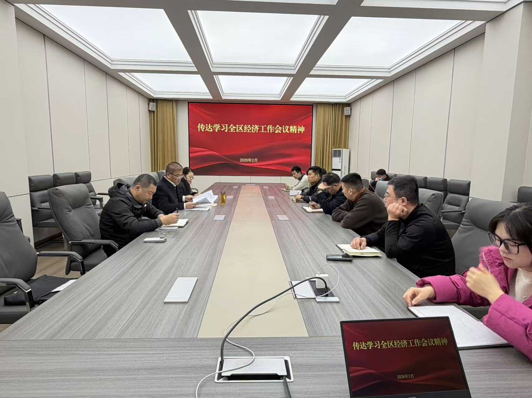 2月5日上午,鲁南大数据公司召开全体人员会议,传达并学习全区经济工作会议精神。会议期间,传达学习了陈忠奇同志于全区经济工作会议上的讲话等相关材料,同时对2026年公司经济工作作出安排部署。会议强调,全区经济工作会议为2026年的工作提供了根本性遵循。全体员工要始终保持政治上的清醒,强化风险意识,坚定不移地贯彻稳中求进的工作总基调。面对复杂严峻的经济形势,要着力创新工作思路,加大招商引资力度,为全区高质量发展提供有力支撑。