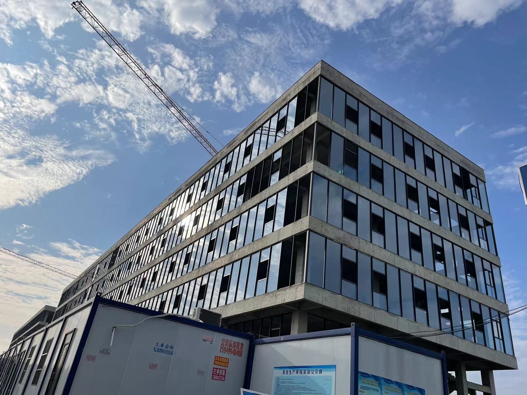 2、本周进展情况:研发办公楼A座幕墙玻璃三面基本安装完成,B座幕墙玻璃进行安装。厂房西侧继续基础开挖,东侧独立基础钢筋绑扎,地磅安装完成。