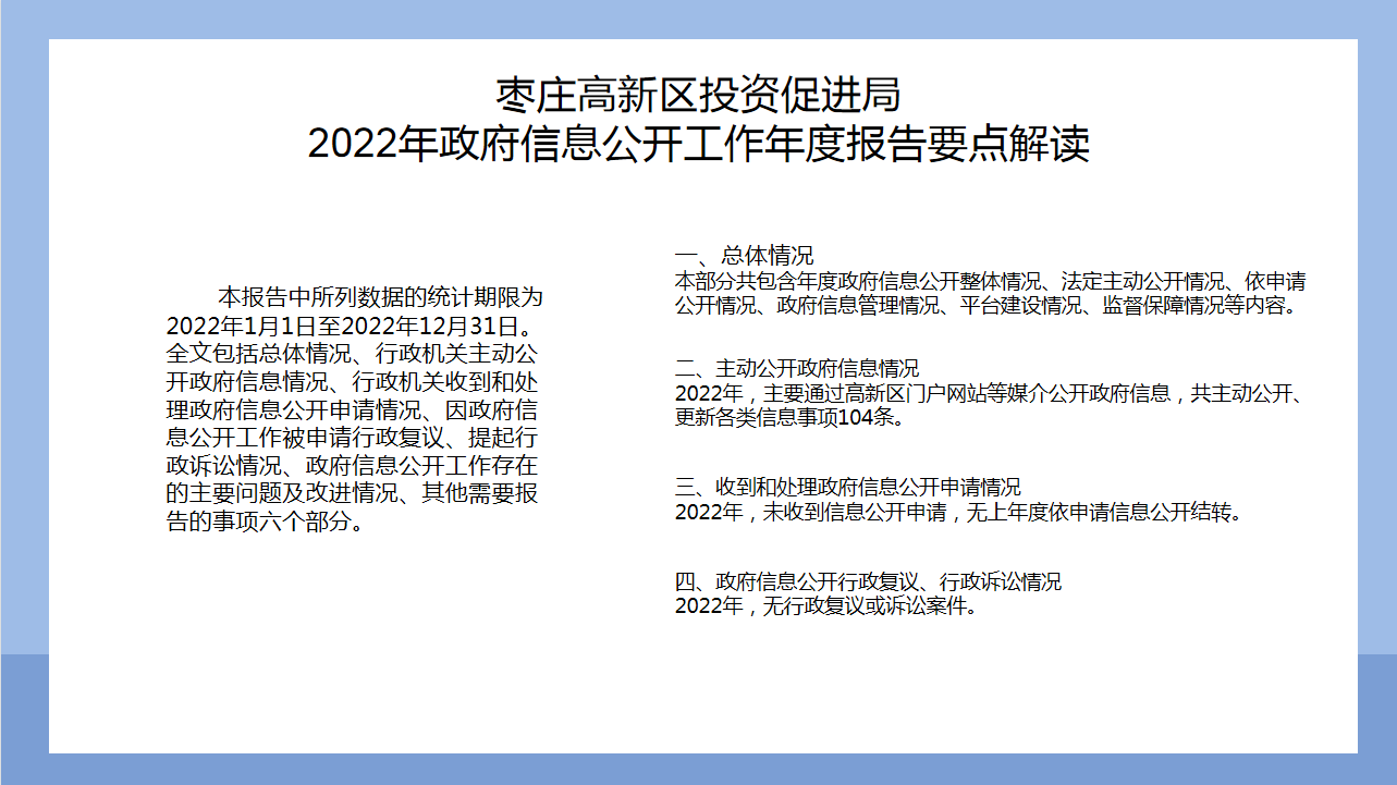枣庄高新区投资促进局2022年政府信息公开工作年度报告