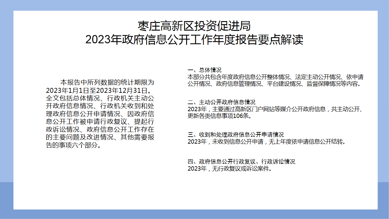 枣庄高新区投资促进局2023年政府信息公开工作年度报告