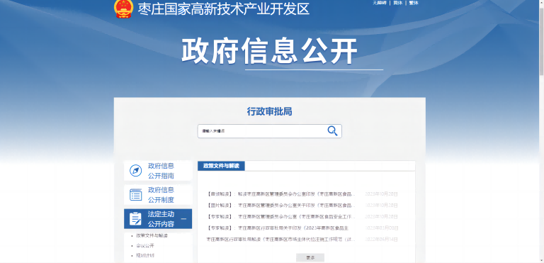枣庄高新区行政审批局2023年政府信息公开工作年度报告
