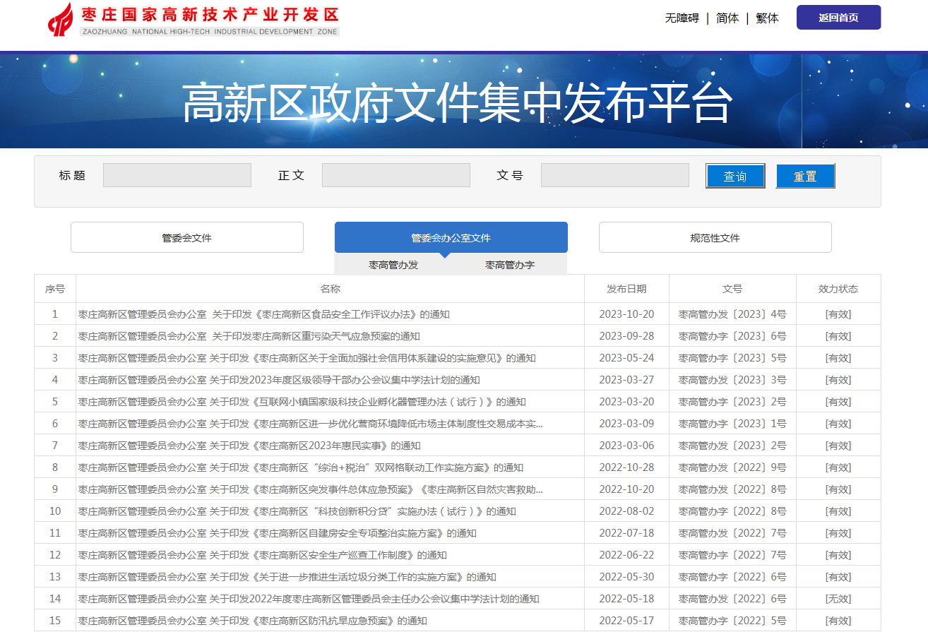 枣庄高新区党政综合办公室2023年政府信息公开工作年度报告