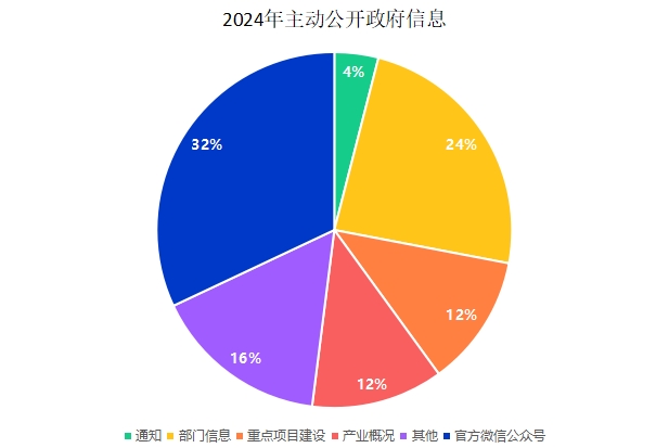 2024年主动公开政府信息100条。其中,通过政府门户网站公开政府信息68条,其中部门信息24条,产业概况12条,重点项目建设情况12条,其他信息16条;通过高新区官方微信公众号公开各类信息32条。处理互动交流1件,按时回复完成。