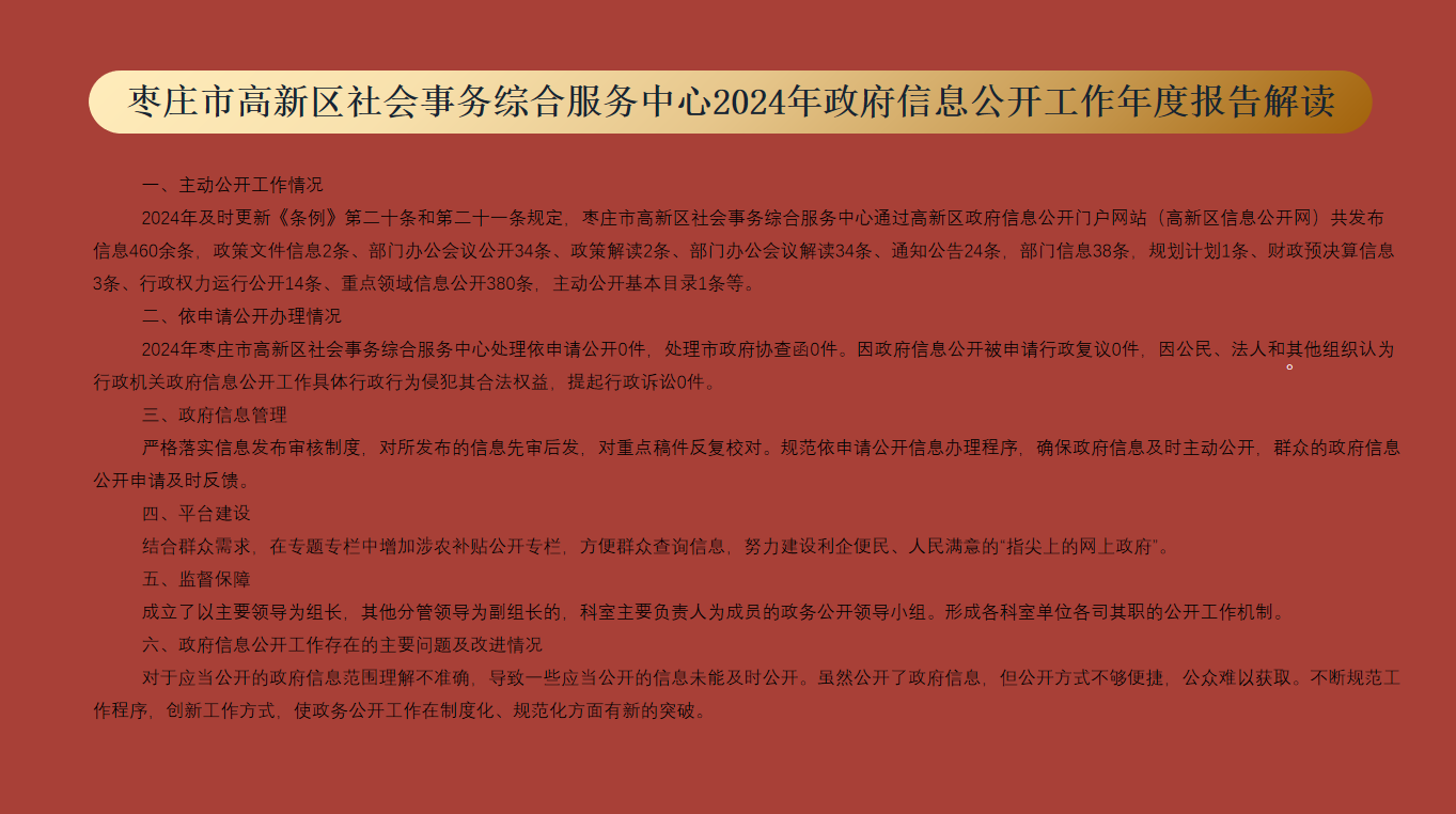枣庄市高新区社会事务综合服务中心2024年政府信息公开工作年度报告