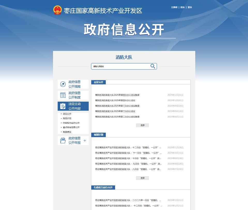 枣庄高新区消防救援大队2025年政府信息公开工作年度报告